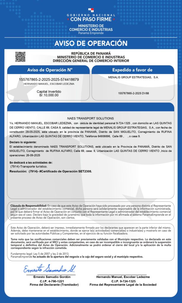 Menalis Group Estrategias es una empresa panameña especializada en transporte terrestre, con una visión clara de expansión internacional. Ofrecemos soluciones integrales de movilidad para turismo, eventos corporativos y operaciones logísticas, combinando comodidad, seguridad y eficiencia en cada trayecto.