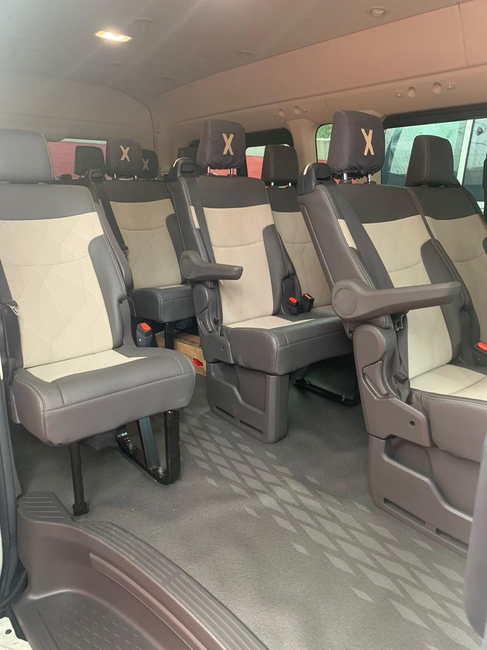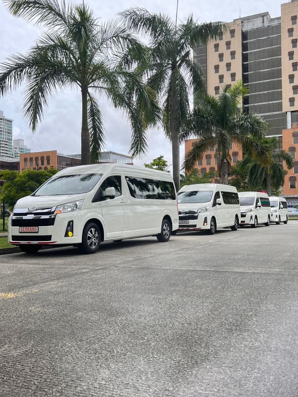 con vehículos que van desde 3 hasta 50 pasajeros. Cada unidad está equipada con: